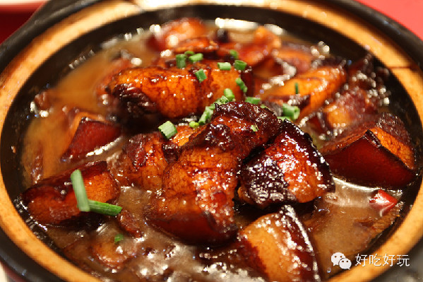 老妈妈红烧肉是店里的经典家常菜之一,红烧肉选用猪五花肉,肥瘦相间的五花肉可以让红烧肉的口感达到最佳。五花肉切块后放入锅中焯水,然后捞起重新下锅翻炒,加入生姜、大蒜、酱油、花雕酒等各种调味料后炖制一个小时,方可出锅装盘。装盘的红烧肉,色泽红润,入口香甜软糯。