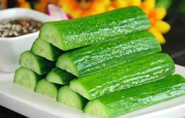 黄瓜含有丰富的维C,并且黄瓜90%都是水分,是一种低热量的蔬菜。黄瓜含有一种叫丙醇二酸的物质,这种物质可抑制糖类物质转化为脂肪。它含有纤维素,对促进肠蠕动、加快排泄和降低胆固醇有一定的作用。