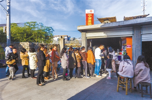 昨天,黄岩宁溪小吃“麦鼓头”摊点前,吃货们排起了长龙,以前立等可取,现在一饼难求。