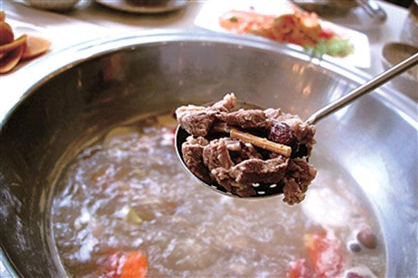作为肉食界的一大主角,羊肉,似乎没有它的同伴猪肉、牛肉受欢迎,原因很简单,膻味。爱的人不在乎,但介意的人,就一口都吃不下。不过,在313羊庄,食客们就无须再为这一点而烦恼了——来自大草原的羊肉已经南下进驻,它们不是山羊,而是纯正的绵羊。羊排、羊脖、羊腿、羊蝎子等明档自选,食客可以根据自己的喜好挑选,然后直接上秤称重,交给师傅现洗现切,制作时不放调料,直接烀着吃。半蒸半煮,只为保证羊肉本身的鲜香味道,也让我们品尝到了原汁原味的羊肉汤。一口暖身,二口尝鲜,三口回味无穷……如此赞、绝、妙,真是一百口都不嫌多哦。
