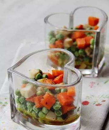原料:豌豆、杏鲍菇、胡萝卜、黑胡椒粒、白糖;